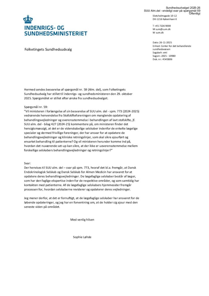 Spørgsmål og svar – sundhedsministeren november 2025 Besvarelsen fra sundhedsministeren nov 25Download